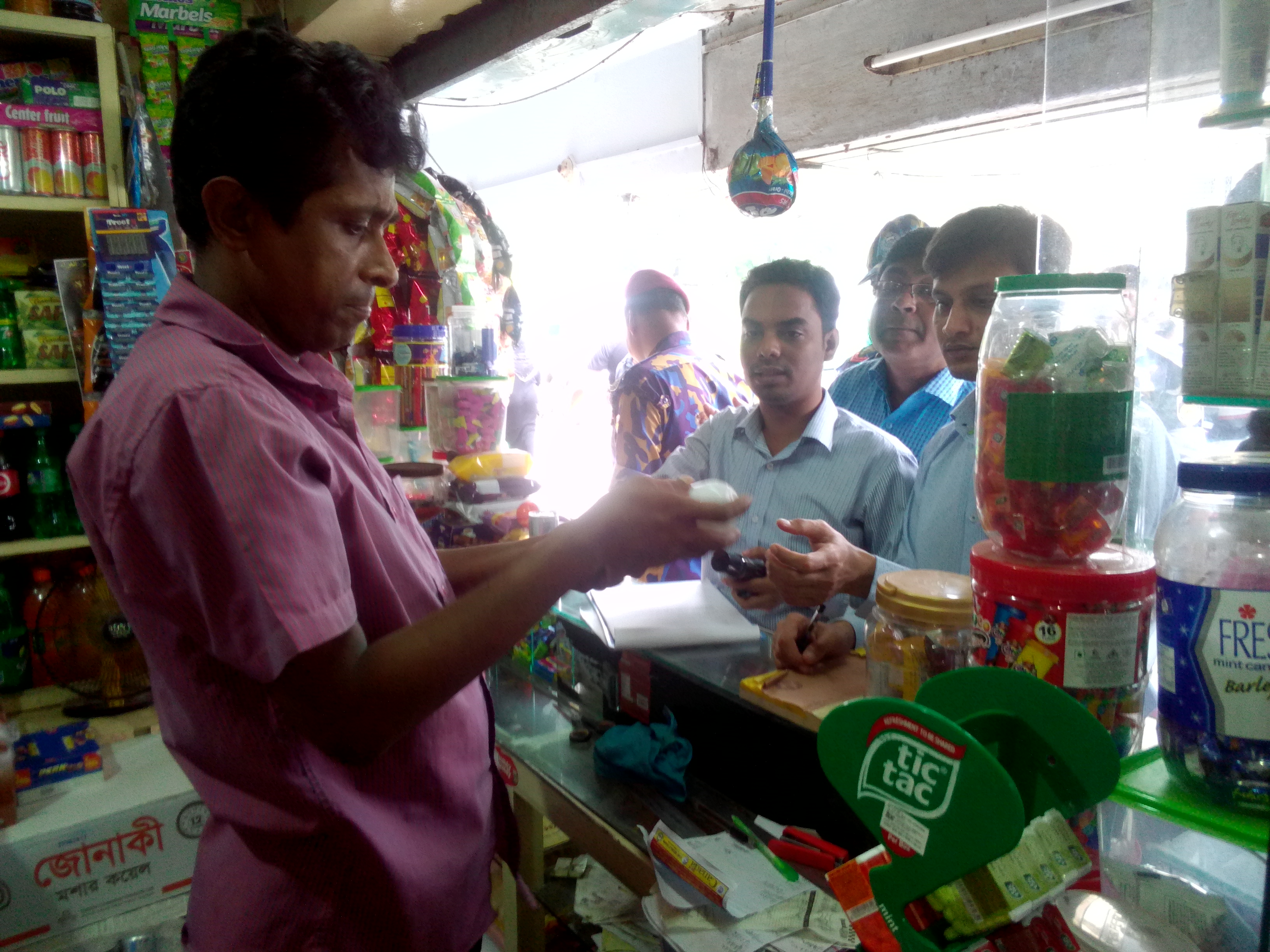 ভোক্তা অধিকার সংরক্ষণ আইন ২০০৯ এর ৪৩ ও ৩৭ ধারা অনুযায়ী নিউ ঘোষ ডেয়ারীকে তিন হাজার টাকা, ইজি বাই ষ্টোরকে দুই হাজার টাকা, কায়েদ এন্টার প্রাইজকে তিন হাজার টাকা, পিজা বাজারকে পাঁচ হাজার টাকা সহ মোট ১৩ হাজার (তের হাজার) টাকা জরিমানা করা হয়।