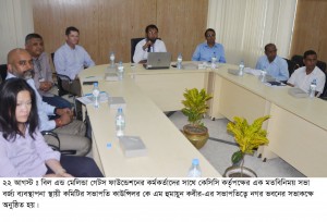খুলনা সফররত বিল এন্ড মেলিন্ডা গেটস ফাউন্ডেশনের কর্মকর্তাদের সাথে খুলনা সিটি কর্পোরেশন কর্তৃপক্ষের এক মতবিনিময় সভা ২২ আগস্ট নগর ভবনের সভাকক্ষে অনুষ্ঠিত হয়। কেসিসি’র বর্জ্য ব্যবস্থাপনা স্থায়ী কমিটির সভাপতি ও ২৭নং ওয়ার্ডের কাউন্সিলর কে এম হুমায়ুন কবীর সভায় সভাপতিত্ব করেন।