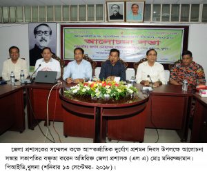 আলোচনা সভায় বক্তারা বলেন, বাংলাদেশ ভৌগলিক কারণেই দুর্যোগপ্রবন অঞ্চল। এ দেশের মানুষ দীর্ঘদিন ধরে দুর্যোগের সাথে নিজেকে মানিয়ে নিয়ে বসবাস করে আসছে। জাতির পিতা বঙ্গবন্ধু শেখ মুজিবুর রহমান দেশ স্বাধীনের পরেই ১৯৭২ সালে দুর্যোগ ঝুঁকি হ্রাস কার্যক্রম শুরু করেন। সে সময়ে প্রাকৃতি দুর্যোগে আক্রান্ত মানুষের আশ্রয়ের জন্য মুজিব কেল্লা তৈরি করা হয়। বক্তারা বলেন, দুর্যোগের পূর্ব প্রস্তুতি যত বেশি নেয়া যাবে, দুর্যোগের ক্ষয়ক্ষতি তত কমিয়ে আনা সম্ভব। এজন্য মানুষের মধ্যে সচেতনার কোন বিকল্প নেই। খুলনায় দুর্যোগের সময় মানুষের আশ্রয়ের জন্য আটটি মালল্টিপারপাস সাইক্লোন সেন্টার নির্মাণ করা হয়েছে এবং এ অর্থবছরে আরও ১৬টি সাইক্লোন সেন্টার নির্মাণ করা হবে।