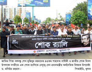 অনুষ্ঠিত হয়। খুলনা আঞ্চলিক তথ্য অফিস (পিআইডি) শোক র্যালিতে অংশগ্রহণ করে এবং পরে অফিসে দোয়া মাহফিলের আয়োজন করে।
