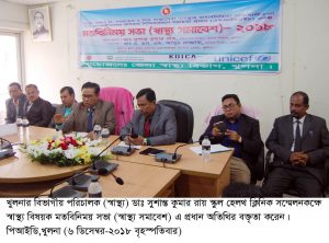 খুলনা জেলা পর্যায়ে মা, নবজাতক ও শিশু স্বাস্থ্যসেবা ব্যবস্থায় জবাবদিহিতা শক্তিশালীকরণ এবং সেবাগ্রহীতাদের অধিকার নিশ্চিতকরণে সহায়তা প্রদান প্রকল্প স্বাস্থ্য বিষয়ক মতবিনিময় সভা (স্বাস্থ্য সমাবেশ) আজ বৃহস্পতিবার সকালে খুলনা স্কুল হেলথ ক্লিনিক সম্মেলনকক্ষে অনুষ্ঠিত হয়। এতে প্রধান অতিথি ছিলেন খুলনার বিভাগীয় পরিচালক (স্বাস্থ্য) ডাঃ সুশান্ত কুমার রায়।