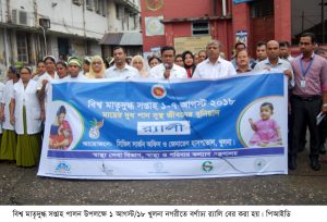 সারা দেশে ১ থেকে ৭ আগস্ট পালিত হচ্ছে বিশ্ব মাতৃদুগ্ধ সপ্তাহ। এবারের প্রতিপাদ্য ‘মায়ের দুধ পান: সুস্থ জীবনের বুনিয়াদ’।