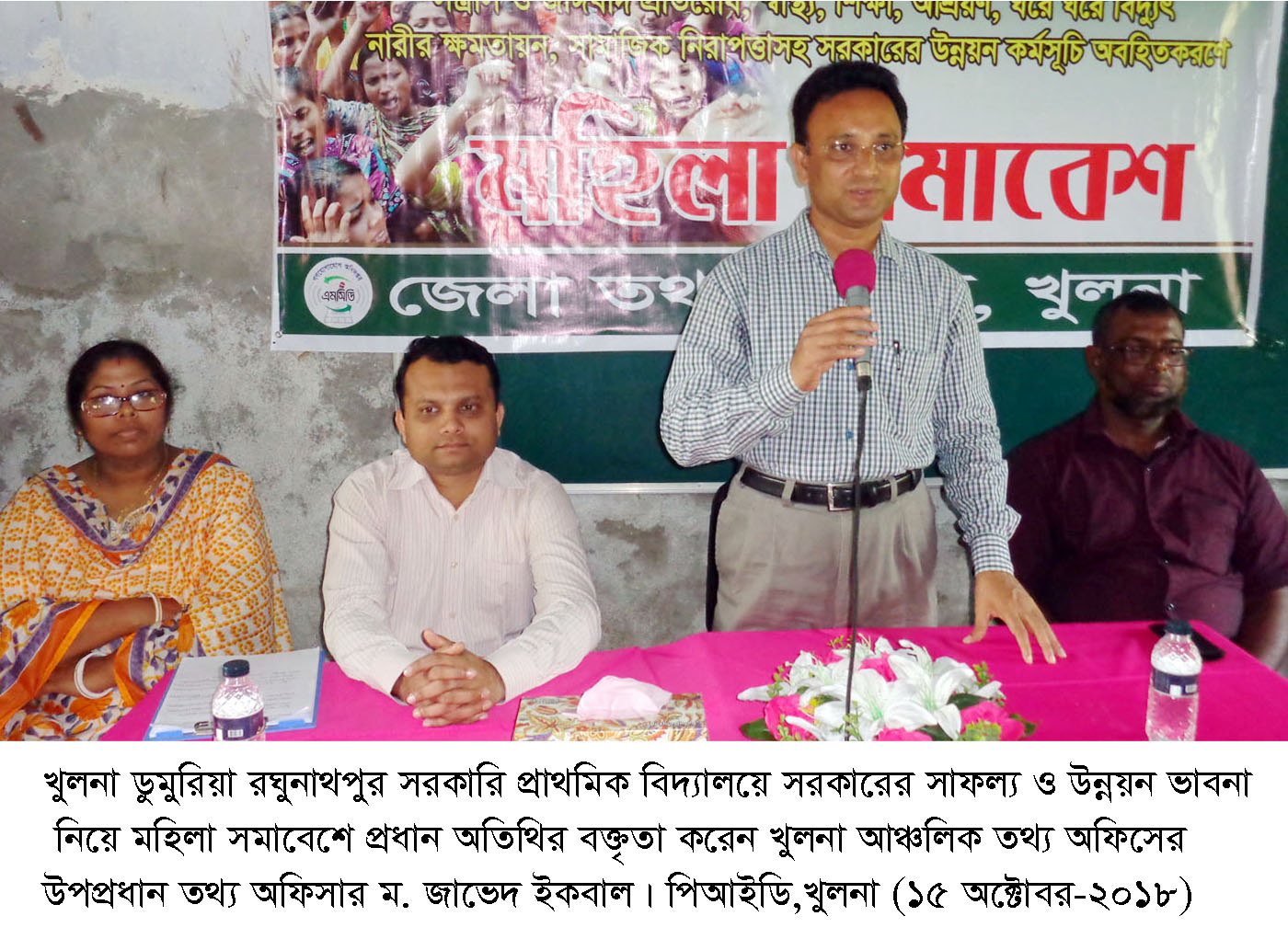 খুলনা জেলা তথ্য অফিসের আয়োজনে সরকারের সাফল্য ও উন্নয়ন ভাবনা নিয়ে আজ সোমবার সকালে খুলনা ডুমুরিয়া রঘুনাথপুর সরকারি প্রাথমিক বিদ্যালয়ে মহিলা সমাবেশ অনুষ্ঠিত হয়।
