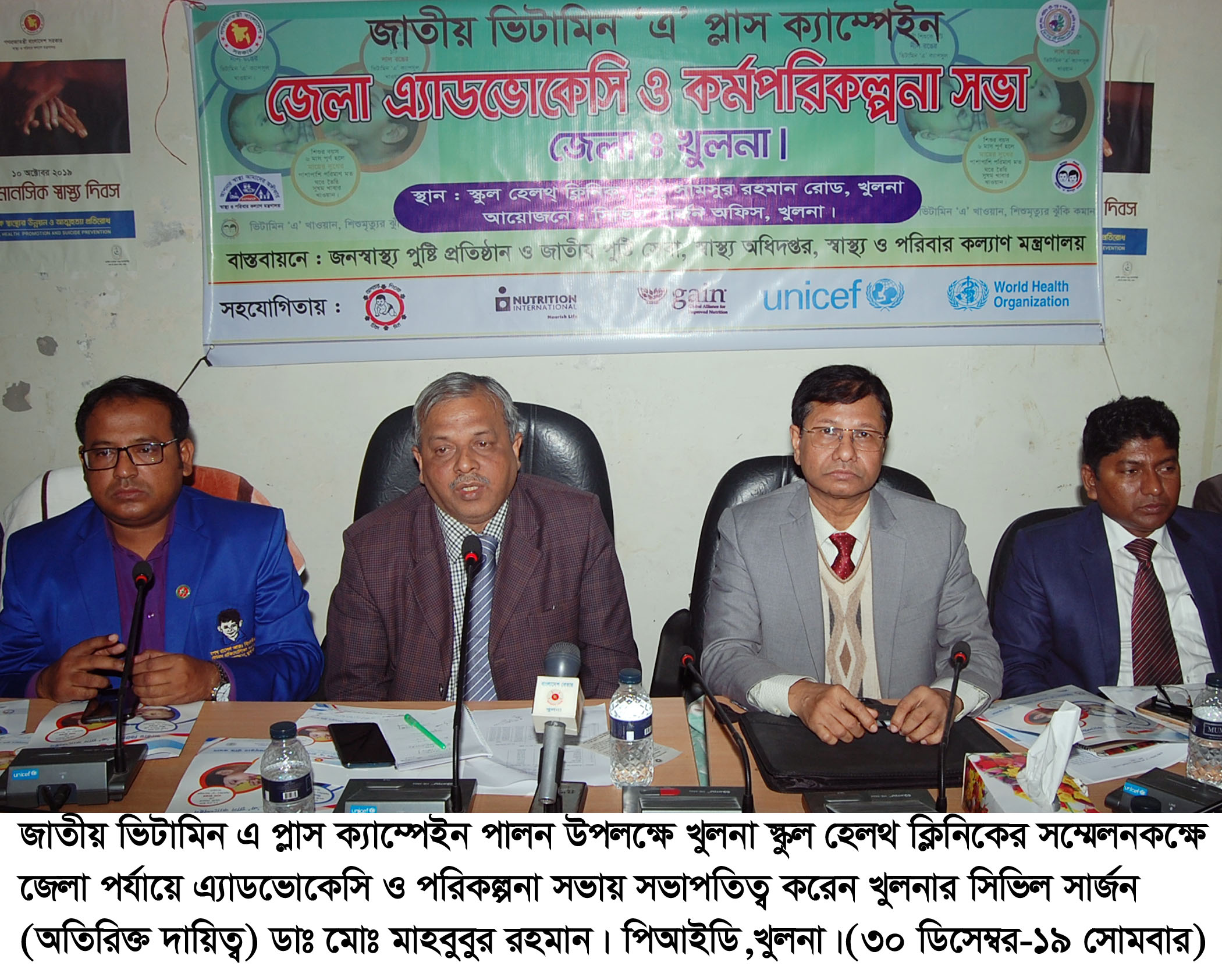 ৩০ ডিসেম্বর সকালে খুলনার স্কুল হেলথ ক্লিনিকের সম্মেলনকক্ষে জেলা পর্যায়ের এ্যাডভোকেসি ও পরিকল্পনা সভায় এ তথ্য জানানো হয়। জাতীয় ভিটামিন-এ প্লাস ক্যাম্পেইন পালন উপলক্ষে খুলনা সিভিল সার্জন দপ্তর এই সভার আয়োজন করে।