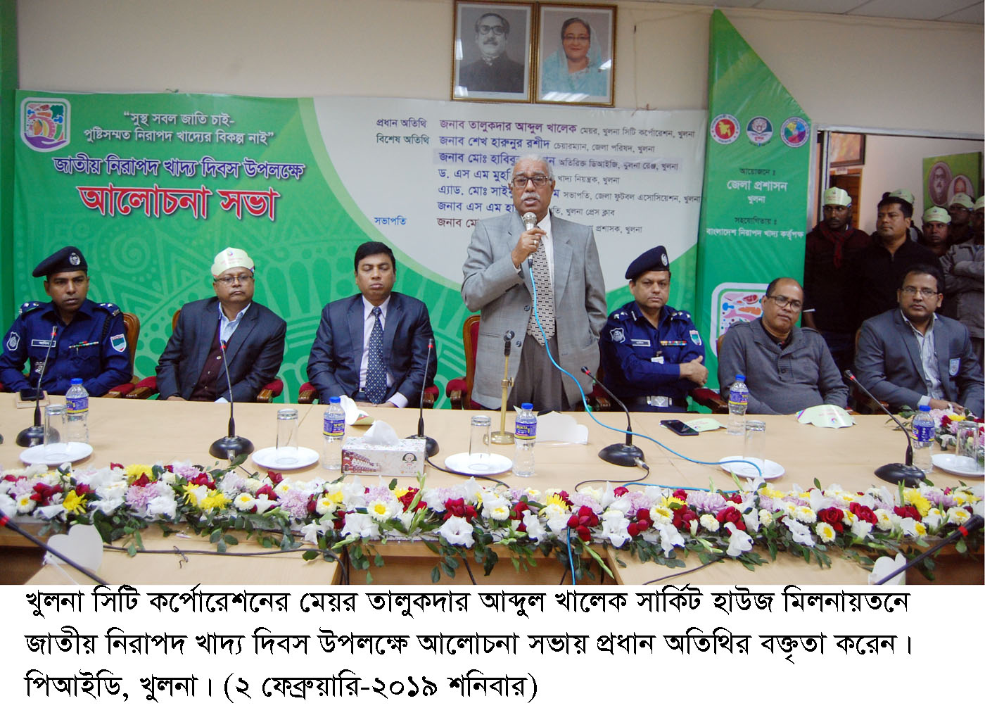 প্রধান অতিথির বক্তৃতায় মেয়র তালুকদার আব্দুল খালেক বলেন, জনস্বাস্থ্য নিশ্চিত করতে নিরাপদ ও পুষ্টিকর খাবারের গুরুত্ব অপরিসীম। অনিরাপদ খাদ্য গ্রহণে অনেক সময় মারাত্মক স্বাস্থ্য ঝুঁকির সৃষ্টি হয়। এজন্য নিরাপদ খাদ্য নিশ্চিতে কঠোরভাবে আইন প্রয়োগের পাশাপাশি সবাইকে সচেতন হতে হবে। দেশ এখন খাদ্যে স্বয়ংসম্পূর্ণ। সরকার সবার জন্য নিরাপদ খাদ্য নিশ্চিত করতে চায়। এজন্য নিরাপদ খাবার নিশ্চিত করার লক্ষ্যে নিরাপদ খাদ্য আইন-২০১৩ প্রনয়ণ করছে। তিনি আরও বলেন, উৎপাদনের মাঠ থেকে শুরু করে খাবার টেবিল পর্যন্ত সকলক্ষেত্রে নিরাপদ খাবার নিশ্চিত করতে হবে। মেয়র সার ও কীটনাশক ব্যবহার, খাদ্যদ্রব্যের প্রক্রিয়াজাতকরণ, সরবরাহ ব্যবস্থা, সংরক্ষণসহ সকল কৃষিপণ্যকে নিরাপদ রাখতে সংশ্লিষ্ট সকলকে দায়িত্বশীল ভূমিকা পালনের আহবান জানান।