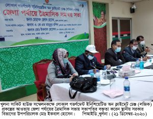 খুলনা জেলা প্রশাসক কার্যালয়ের স্থানীয় সরকার বিভাগের উপ-পরিচালক মোঃ ইকবাল হোসেনের সভাপতিত্বে অনুষ্ঠানে ভার্চুয়ালে বিশেষ অতিথি ছিলেন ইউএনডিপি’র এসডিজি বিষয়ক বিশেষজ্ঞ এএসএম মাহবুব আলম এবং ইউএনডিপি’র ক্লাইমেট চেঞ্জ স্পেশালিস্ট একেএম মামুনুর রশীদ। সভায় খুলনা আঞ্চলিক তথ্য অফিসের উপ-প্রধান তথ্য অফিসার জিনাত আরা আহমেদ, জেলা প্রাণিসম্পদ অফিসার এসএম আওয়াল হক এবং কৃষি সম্প্রসারণ অধিদপ্তরের উপ-পরিচালক মোঃ হাফিজুর রহমান উপস্থিত ছিলেন।