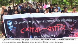 সকাল ৮-৪৫ মিনিটে বিশ্ববিদ্যালয় জামে মসজিদে পবিত্র কোরআনখানি অনুষ্ঠিত হয়। এরপর সকাল ৯টায় উপাচার্যের নেতৃত্বে এক শোকর্যালি বের হয়। শোকর্যালিটি নতুন প্রশাসনিক ভবনের সামনে থেকে ক্যাম্পাসের হাদী চত্ত্বর ও কটকা হয়ে একনম্বর একাডেমিক ভবনের সামনে এসে শেষ হয়। ৯-১৫ মিনিটে এক নম্বর একাডেমিক ভবনে বঙ্গবন্ধুর ওপর আলোকচিত্র প্রদর্শনীর উদ্বোধন করেন উপাচার্য। সকাল সাড়ে ১০ একই ভবনের ইউআরপি ডিসিপ্লিনের লেকচার থিয়েটারে জাতির জনক বঙ্গবন্ধুর ওপর এক আলোচনা অনুষ্ঠিত হয়। আলোচনার শুরুতে জাতীয় সঙ্গীত বাজানো হয় এবং বঙ্গবন্ধুসহ ১৫আগস্টে নিহতদের স্মরণে এক মিনিট নিরবতা পালন করা হয়।