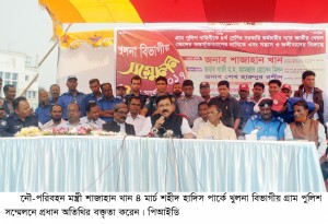 নৌ-পরিবহন মন্ত্রী শাজাহান খান বলেন, গ্রাম পুলিশ সদস্যদের মাদকের বিরুদ্ধে লড়াই করতে হবে। মাদক যুব সমাজের জীবনীশক্তি ধ্বংস করছে। যুব সমাজসহ আমাদের সকলকে মাদকের, জঙ্গীর, বাল্যবিবাহ ও সন্ত্রাসের বিরুদ্ধে সংগ্রাম চালিয়ে যেতে হবে। মন্ত্রী আজ দুপুরে খুলনা শহীদ হাদিস পার্কে বাংলাদেশ গ্রাম পুলিশ কর্মচারী ইউনিয়ন খুলনা বিভাগীয় সম্মেলনে প্রধান অতিথির বক্তৃতায় এ কথা বলেন।