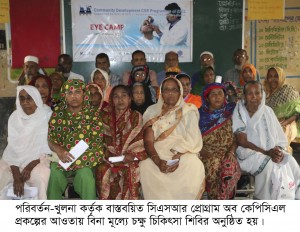 উল্লেখ্য, বেসরকারী উন্নয়ন সংস্থা পরিবর্তন-খুলনা, খুলনা পাওয়ার কোম্পানী লিঃ এর আর্থিক সহায়তায় ২০১৩ সাল থেকে কেসিসির ৭ নং ওয়ার্ডে পাওয়ার প্লান্ট সংলগ্ন এলাকায় স্থানীয় জনসাধারনের সম্পৃক্ততায় প্রকল্পটি বাস্তবায়ন করে আসছে। প্রকল্পের আওতায় স্থানীয় জনসাধারনকে বিভিন্ন ধরনের সেবা প্রদান করা হয়, তারই ধারাবাহিকতায় এই চক্ষু চিকিৎসা শিবির অনুষ্ঠিত হয়।