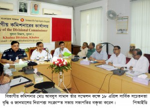 নিরাপত্তা সম্পর্কে সার্বিক সচেতনতা বৃদ্ধি ও জানমালের নিরাপত্তা সংক্রান্ত বিভাগীয় আলোচনা সভা ১৮ এপ্রিল খুলনা বিভাগীয় কমিশনারের কার্যালয়ের সম্মেলন কক্ষে অনুষ্ঠিত হয়। এতে সভাপতিত্ব করেন খুলনা বিভাগীয় কমিশনার মো. আবদুস সামাদ।