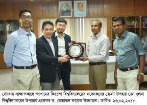 জাপানের কিয়তো বিশ্ববিদ্যালয়ের দুই সদস্যের একটি গবেষক প্রতিনিধিদল আজ বিকেল ৪ টায় উপাচার্যের কার্যালয়ে উপাচার্য প্রফেসর ড. মোহাম্মদ ফায়েক উজ্জামানের সাথে সৌজন্য সাক্ষাত করেন।