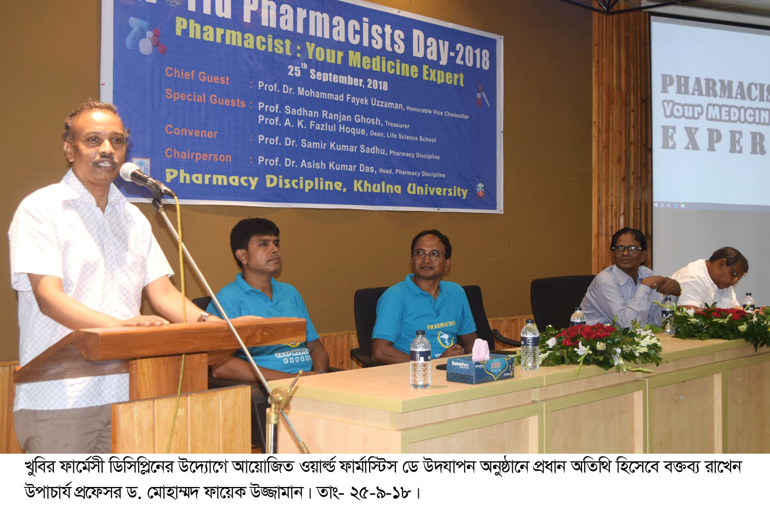 মঙ্গলবার ২৫ সেপ্টেম্বর খুলনা বিশ্ববিদ্যালয়ের আচার্য জগদীশ চন্দ্র বসু একাডেমিক ভবনের সাংবাদিক লিয়াকত আলী মিলনায়তনে ফার্মেসী ডিসিপ্লিনের উদোগে ‘ওয়ার্ল্ড ফার্মাস্টিস ডে-২০১৮’উদযাপিত হয়।