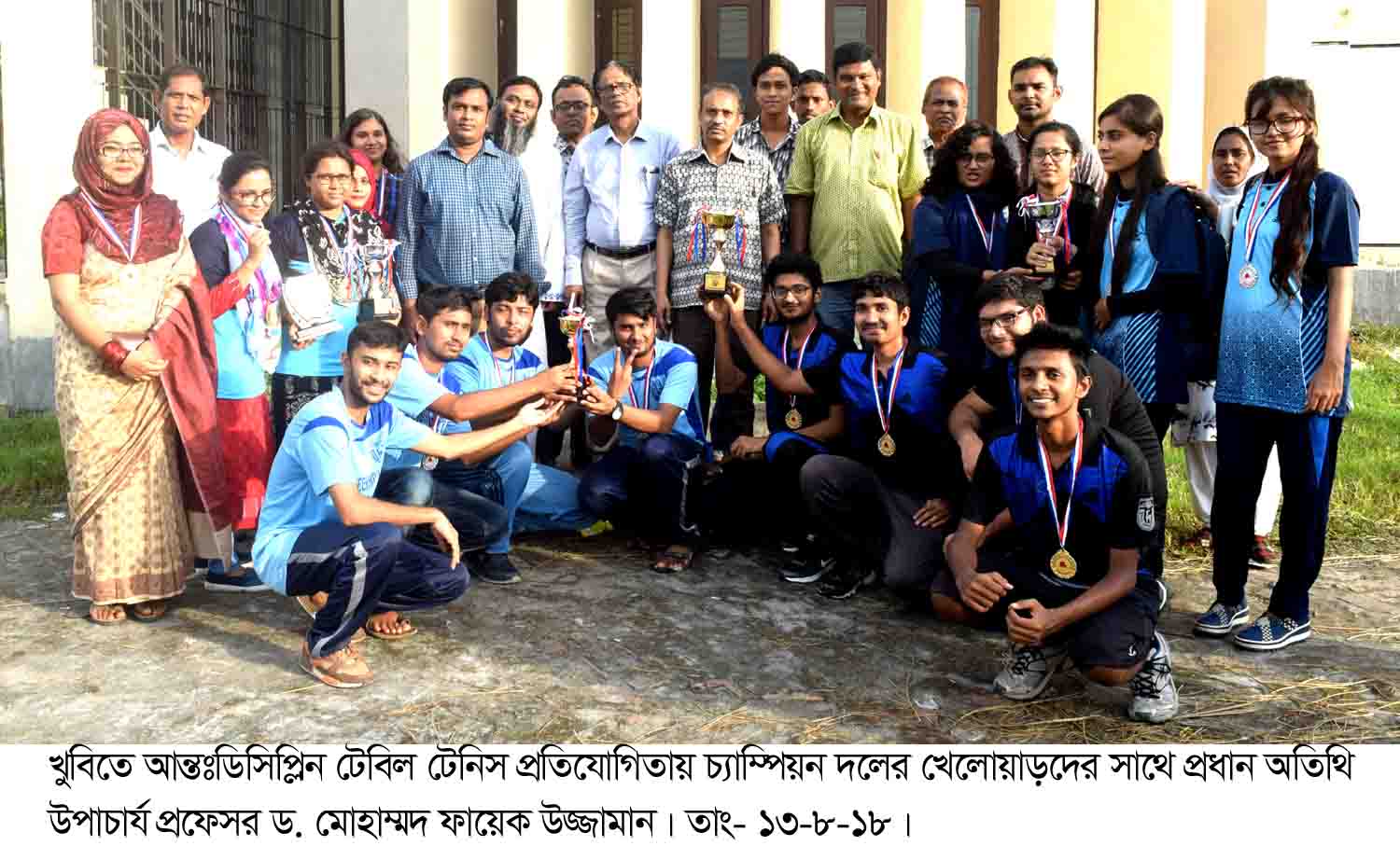 দেশে এবং বিভিন্ন বিশ্ববিদ্যালয়ে যে সমস্ত খেলা প্রচলিত আছে খুলনা বিশ্ববিদ্যালয়েও সেসব খেলার প্রচলনের উপরে তিনি গুরুত্বারোপ করেন। উপাচার্য বলেন পড়াশোনার পাশাপাশি শারীরিক চর্চা ও চিত্ত বিনোদনমুলক অনুষ্ঠানে শিক্ষার্থীদের অংশগ্রহণ করা উচিত। তিনি বিশ্ববিদ্যালয়ে অচিরেই সুলতানা কামাল জিমনেসিয়াম নির্মাণ কাজ শুরু হবে এবং বিশ্ববিদ্যালয়ে একটি সুইমিং পুলের ব্যবস্থা করার কথা উল্লেখ করেন। পুরস্কার বিতরণী অনুষ্ঠানে বিশেষ অতিথি হিসেবে বক্তব্য রাখেন ট্রেজারার প্রফেসর সাধন রঞ্জন ঘোষ। শারীরিক শিক্ষা চর্চা বিভাগের পরিচালক (ভারপ্রাপ্ত) মোল্লা মোহাম্মদ শফিকুর রহমানের সভাপতিত্বে অনুষ্ঠিত পুরস্কার বিতরণী অনুষ্ঠানটি সঞ্চালনা করেন শারীরিক শিক্ষা চর্চা বিভাগের উপ-পরিচালক এস এম জাকির হোসেন। এ সময় সংশ্লিষ্ট ডিসিপ্লিন প্রধান, শিক্ষক, কর্মচারী ও ছাত্র-ছাত্রীবৃন্দ উপস্থিত ছিলেন।