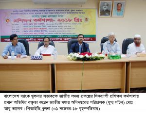 খুলনা অঞ্চলের আওতাধীন বাণিজ্যিক ব্যাংক, ডাকঘর, জেলা সঞ্চয় অফিস ও ব্যুরো অফিসারদের সমন্বয়ে জাতীয় সঞ্চয় প্রকল্পের দিনব্যাপী প্রশিক্ষণ কর্মশালা আজ বৃহস্পতিবার সকালে বাংলাদেশ ব্যাংক খুলনার সভাকক্ষে অনুষ্ঠিত হয়।