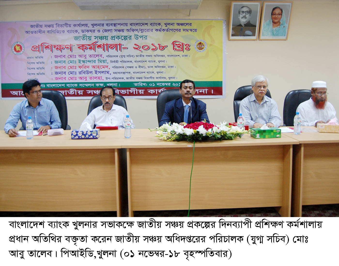 এ কর্মশালার উদ্বোধন করেন প্রধান অতিথি জাতীয় সঞ্চয় অধিদপ্তরের পরিচালক যুগ্ম সচিব মোঃ আবু তালেব। বাংলাদেশ ব্যাংক খুলনার ব্যবস্থাপনায় জাতীয় সঞ্চয় খুলনা বিভাগীয় কার্যালয় এ অনুষ্ঠানের আয়োজন করে।
