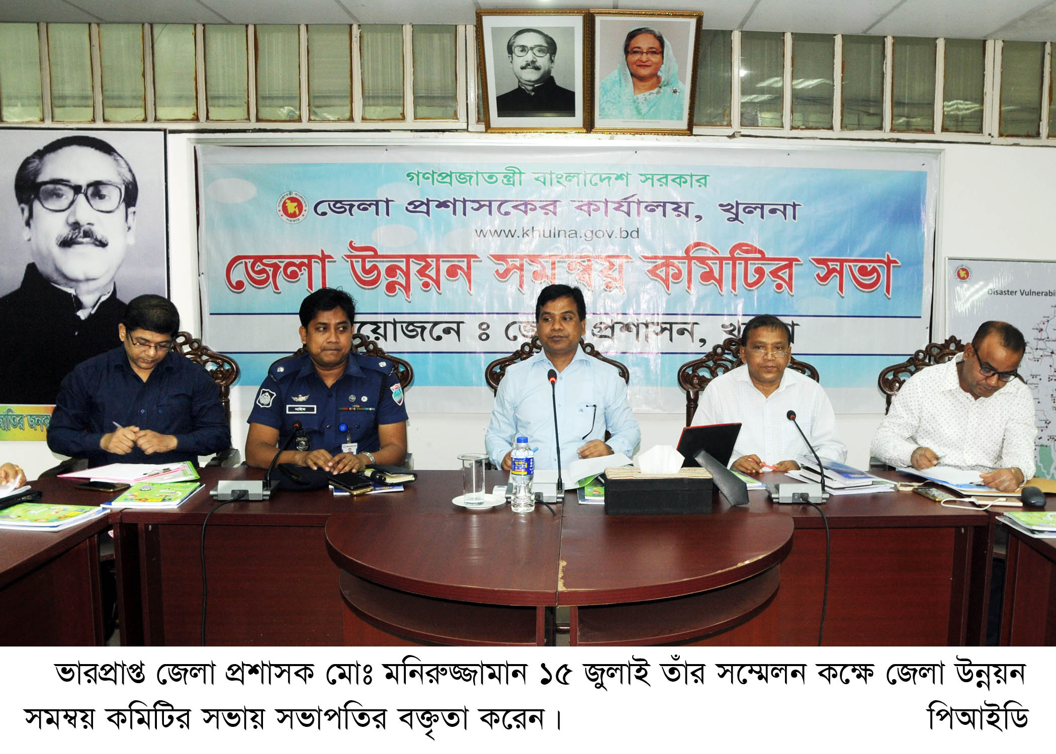 খুলনা জেলা উন্নয়ন সমন্বয় কমিটির জুলাই মাসের সভা আজ সকালে খুলনা জেলা প্রশাসন সম্মেলন কক্ষে অনুষ্ঠিত হয়। অতিরিক্ত জেলা প্রশাসক(সার্বিক) মোঃ মনিরুজ্জামান এ সভায় সভাপতিত্ব করেন।