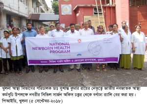 নবজাতকের মৃত্যুহার কমানোর মাধ্যমে টেকসই উন্নয়ন লক্ষ্যমাত্রা (এসডিজি) অর্জনের লক্ষ্যে জাতীয় নবজাতক স্বাস্থ্য কর্মসূচির (এনএনএইচপি) উদ্বোধন ও আলোচনা সভা আজ (বুধবার) সকালে খুলনা জেনারেল হাসপাতালে অনুষ্ঠিত হয়।