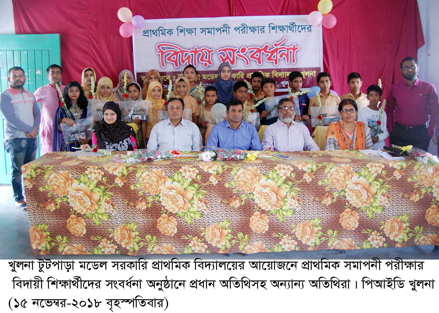 মোঃ আমিন উদ্দিন স্মৃতি পরিষদের সহযোগিতায় খুলনা টুটপাড়া মডেল সরকারি প্রাথমিক বিদ্যালয়ের আয়োজনে আজ বৃহস্পতিবার সকালে বিদ্যালয়ের প্রাথমিক সমাপনী পরীক্ষার বিদায়ী শিক্ষার্থীদের সংবর্ধনা অনুষ্ঠিত হয়।