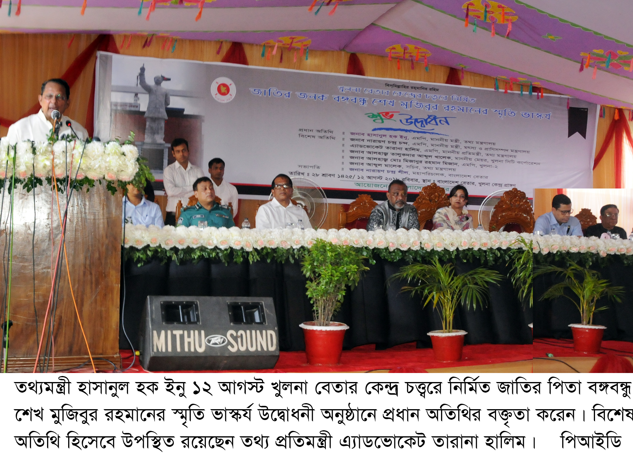 তথ্যমন্ত্রী হাসানুল হক ইনু আজ দুপুরে খুলনা বেতার চত্বরে বঙ্গবন্ধু ভাস্কর্য উদ্বোধনকালে সুধী সমাবেশে প্রধান অতিথির বক্তৃতায় এসব কথা বলেন।