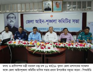 তিনি আজ সকালে খুলনা জেলা প্রশাসকের সম্মেলন কক্ষে জেলা আইনশৃঙ্খলা এবং সন্ত্রাস ও নাশকতা প্রতিরোধ কমিটির সভায় প্রধান উপদেষ্টার বক্তৃতায় এসব কথা বলেন। খুলনা জেলা প্রশাসক ও জেলা ম্যাজিস্ট্রেট মোঃ আমিন উল আহসান এতে সভাপতিত্ব করেন।