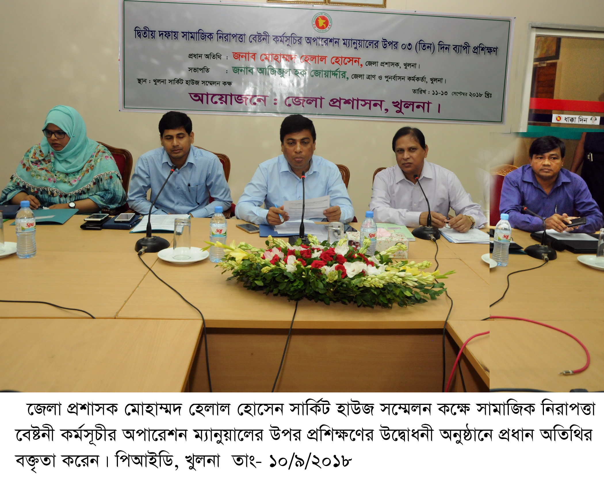 সামাজিক নিরাপত্তা বেষ্টনী কর্মসূচির অপারেশন ম্যানুয়ালের ওপর তিনদিনব্যাপী প্রশিক্ষণের উদ্বোধনী অনুষ্ঠান ১১ সেপ্টেম্বর মঙ্গলবার সকালে খুলনা সার্কিট হাউজ সম্মেলনকক্ষে অনুষ্ঠিত হয়। অনুষ্ঠানে প্রধান অতিথি ছিলেন খুলনা জেলা প্রশাসক মোহাম্মদ হোসেন।