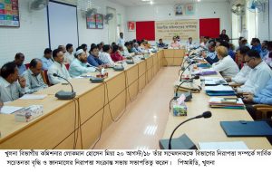 খুলনা বিভাগের নিরাপত্তা সম্পর্কে সার্বিক সচেতনতা বৃদ্ধি ও জানমালের নিরাপত্তা সংক্রান্ত সভা আজ সকালে বিভাগীয় কমিশনার লোকমান হোসেন মিয়ার সভাপতিত্বে তাঁর সম্মেলনকক্ষে অনুষ্ঠিত হয়।