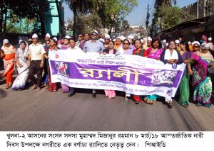 খুলনায় ৮ মার্চ নানা আয়োজনে পালিত হয় আন্তর্জাতিক নারী দিবস-২০১৮। খুলনা জেলা প্রশাসন, জেলা মহিলা বিষয়ক দপ্তর, সরকারি-বেসরকারি দপ্তর, সামাজিক-সাংস্কৃতিক সংস্থা ও বিভিন্ন স্বেচ্ছাসেবী মহিলা সংগঠন যৌথভাবে এ অনুষ্ঠানের আয়োজন করে।