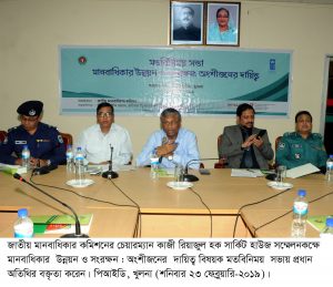 তিনি ২৩ ফেব্রুয়ারী শনিবার বিকেলে খুলনা সার্কিট হাউস সম্মেলনকক্ষে মানবাধিকার উন্নয়ন ও সংরক্ষন: অংশীজনের দায়িত্ব শীর্ষক মতবিনিময় সভায় প্রধান অতিথির বক্তৃতায় এই মন্তব্য করেন। ইউএনডিপি, বাংলাদেশ’র সহযোগিতায় জাতীয় মানবাধিকার কমিশন এই মতবিনিময় সভার আয়োজন করে।