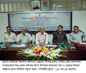 ‘নিরাপদ মানসম্মত পণ্য’ এই প্রতিপাদ্য নিয়ে অন্যান্য স্থানের ন্যায় শুক্রবার খুলনায় বিশ্ব ভোক্তা অধিকার দিবস-২০১৯ পালিত হয়।