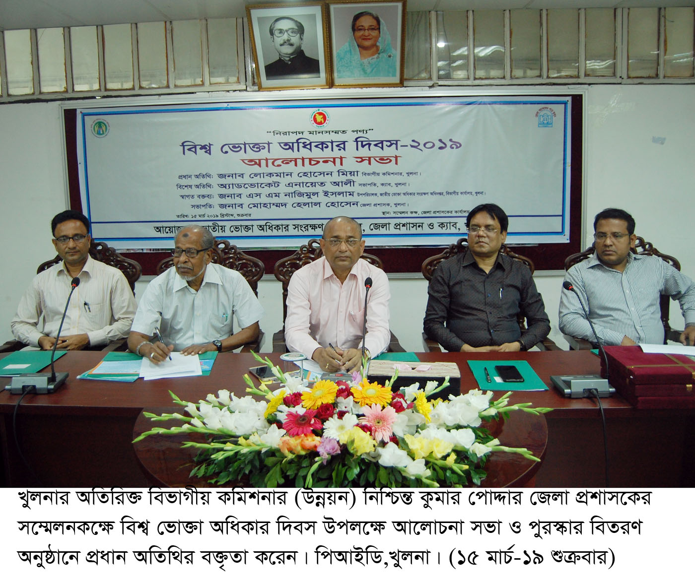 এ উপলক্ষে জাতীয় ভোক্তা অধিকার সংরক্ষণ অধিদপ্তর, জেলা প্রশাসন ও কনজুমার্স এসোসিয়েশন অব বাংলাদেশ (ক্যাব), খুলনার যৌথ উদ্যোগে সকালে জেলা প্রশাসন সম্মেলনকক্ষে আলোচনা সভা ও পুরস্কার বিতরণ অনুষ্ঠিত হয়।এতে প্রধান অতিথি ছিলেন খুলনার অতিরিক্ত বিভাগীয় কমিশনার (উন্নয়ন) নিশ্চিন্ত কুমার পোদ্দার।