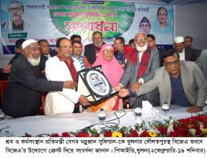 বাংলাদেশ জুট এসোসিয়েশন (বিজেএ)’র উদ্যোগে শনিবার খুলনার দৌলতপুরস্থ বিজেএ ভবনে শ্রম ও কর্মসংস্থান প্রতিমন্ত্রী বেগম মন্নুজান সুফিয়ান-কে সংবর্ধনা প্রদান অনুষ্ঠানের আয়োজন করে।