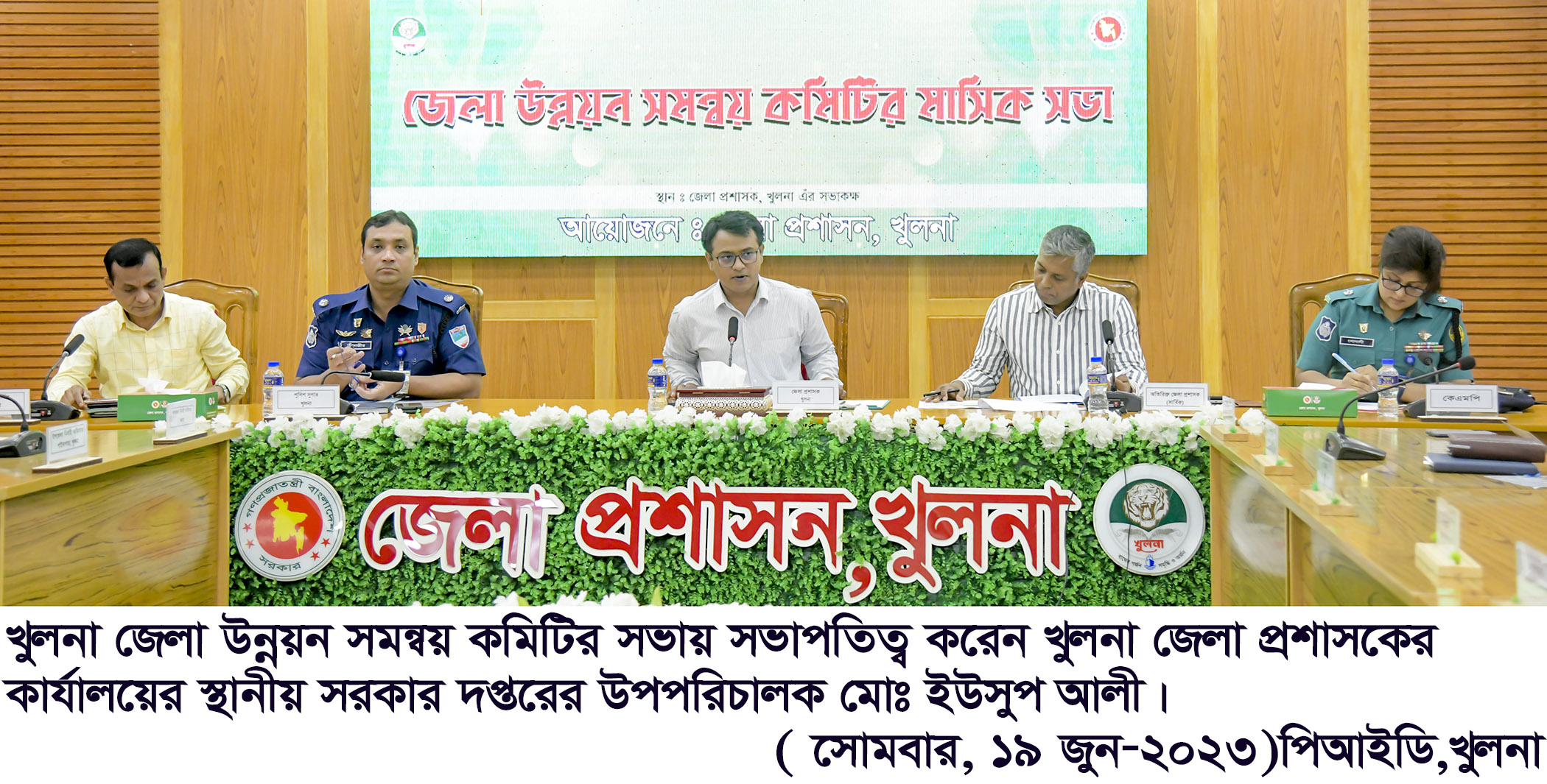 খুলনা জেলা উন্নয়ন সমন্বয় কমিটির জুন মাসের সভা আজ ১৯ জুন সোমবার সকালে খুলনা জেলা প্রশাসন কার্যালয়ের স্থানীয় সরকার দপ্তরের উপ-পরিচালক মোঃ ইউসুপ আলীর সভাপতিত্বে জেলা প্রশাসন সম্মেলনকক্ষে অনুষ্ঠিত হয়।